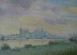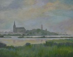 2006Dit was aan het begin van de avond op een mooie zomerse dag Er loopt een fietspad over de dijk. Daar zijn we gaan zitten schilderen.